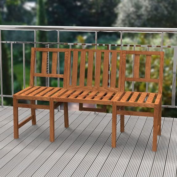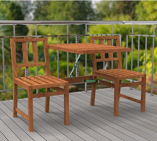 Toujours dans la catégorie des articles futés, La Redoute propose un set de balcon modulable qui permet tantôt d’avoir un banc 4 place, puis de le transformer en ensemble table-chaise en un tour de main.
